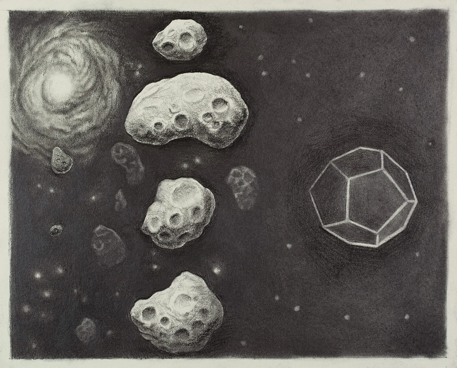 Ordered Asteroids, 2020, graphite on paper, 8 x 10 inches